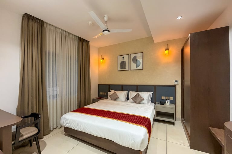 The guestrooms at the Hotel are meticulously sculpted to be your personal sanctuary. Beyond just a place to sleep, these rooms are a masterclass in ergonomic luxury and minimalist beauty. Guests can choose from Deluxe and Standard Category rooms as per their liking and budget. They all feature extra comfortable amenities and prime facilities for a remarkable stay experience.